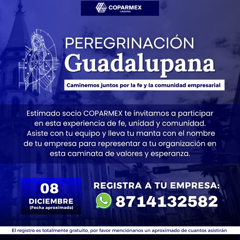 Te invitamos a unirte a nuestra peregrinación especial, un espacio de encuentro, reflexión y unión entre las empresas afiliadas a COPARMEX Laguna.